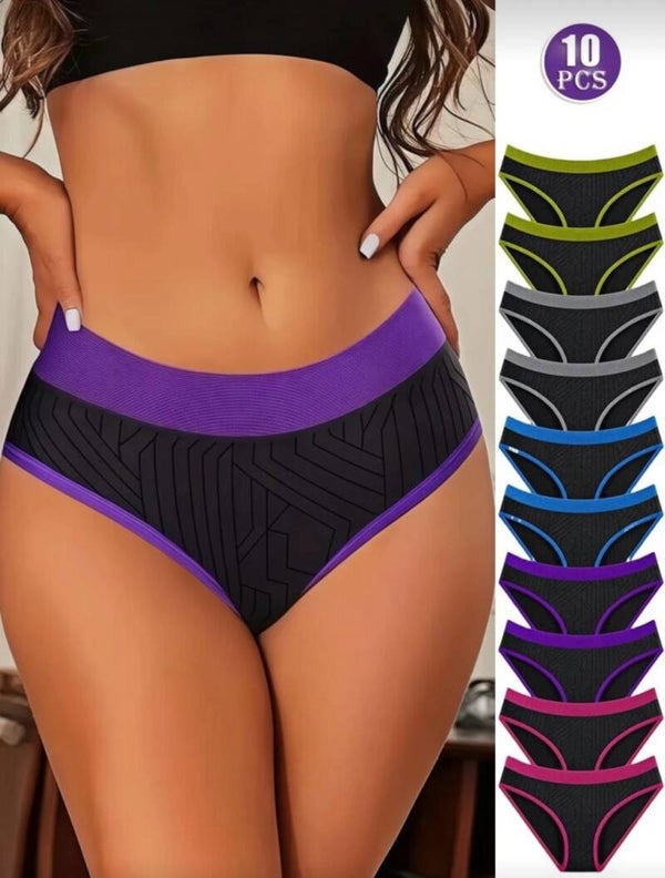 Women's Simple Contrast Color Stitching Design Soft And Comfortable Stretch Briefs